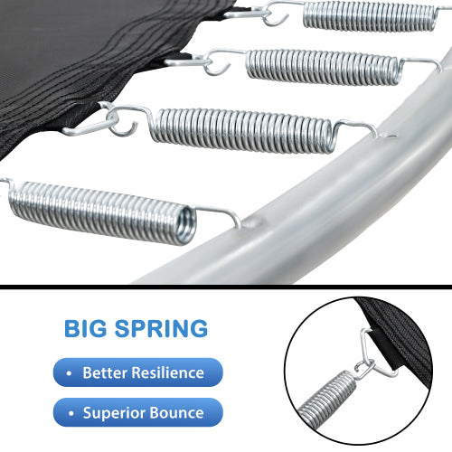 【Safety First】When it comes to children, parents always pay their most attention to confirm the safety issues. This trampoline consists of 72 sturdy and flexible springs, combined with a high-elastic, tough jumping mat, which can ensure the stability of each bounce. We use a redundant spring configuration to ensure a soft impact and avoid excessive tension on the feet and joints, so as not to make the child feel uncomfortable. |