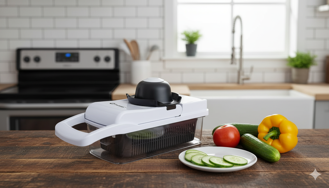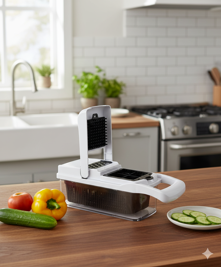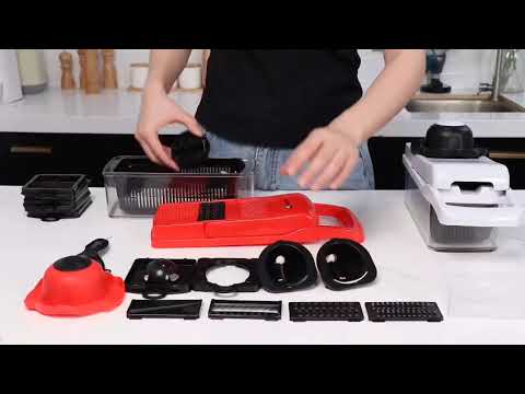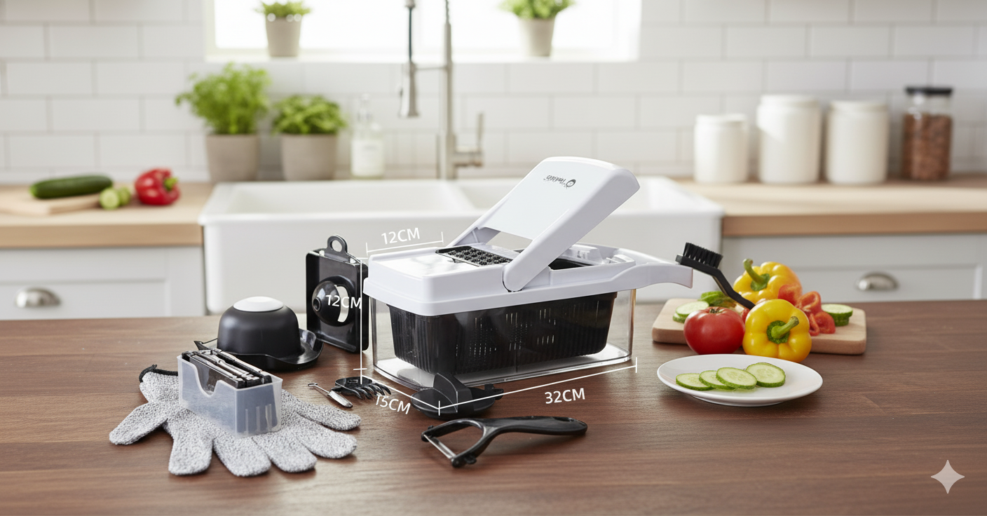 Upgrade your kitchen prep with this 26-in-1 vegetable chopper and slicer set designed to handle all slicing, dicing, shredding, and grating tasks in one compact system. Interchangeable blades let you instantly switch between fine dice, large cubes, julienne cuts, spiral ribbons, and more — with all the mess captured neatly in the storage container below.Built with safety and convenience in mind, it includes a cut-resistant glove, hand guard, peeler, and cleaning tools to keep prep fast and safe. Perfect for salad lovers, meal preppers, home cooks, and anyone who wants faster, cleaner, easier chopping.