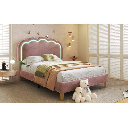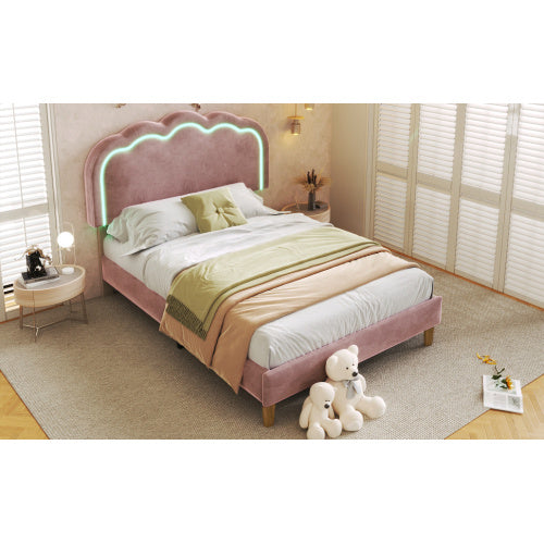 Product Name:Polsterbett LED Einzelbett 90 x 190cm, Bettgestell mit Lattenrost und Verstellbares Kopfteil, Gepolstertes bett in Rosa,Bettrahmen Jugendbett für Schlafzimmer Gästezimmer-Samt